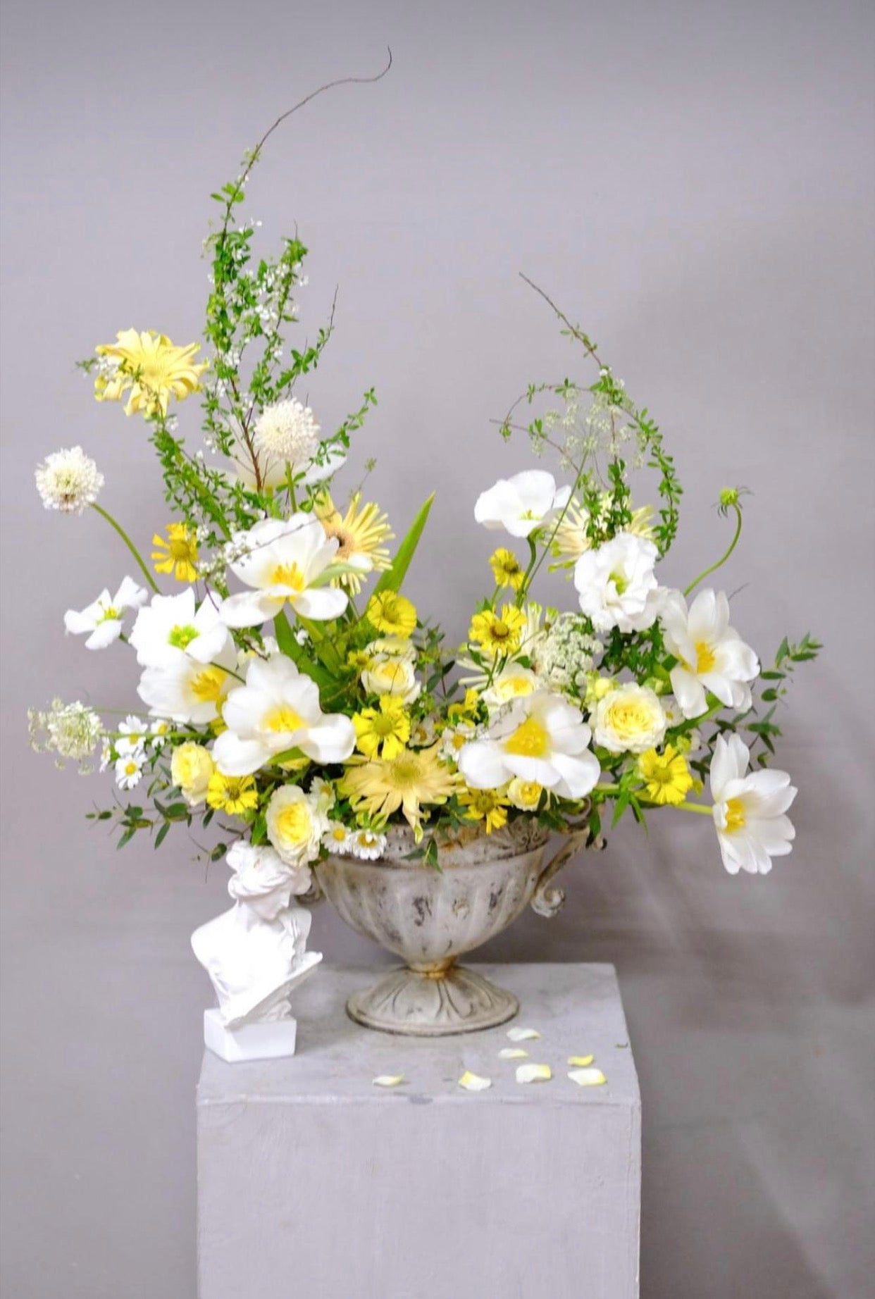 "Eiffel" contains high-quality Tulips, Thunberg Spirea, Butterflies, Alliums, and other flowers. It's truly a gorgeous, elegant, and perfect arrangement for all special occasions. It's also a wonderful gift to make someone feel loved and feel that you care.