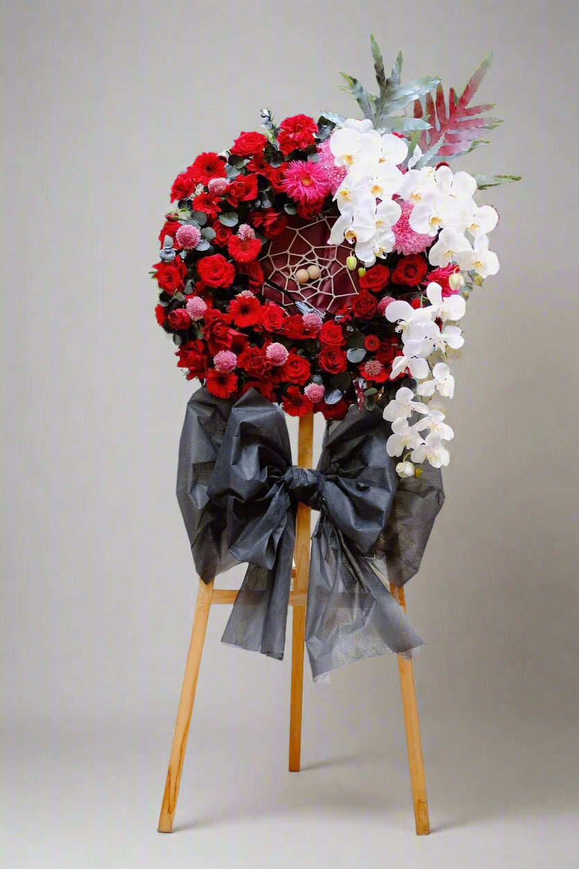 "Deep in Our Heart" includes luxury, high quality Roses, Moms, Gerberas, Olaya, Orchids and Greeneries. It is a last nicest gift expression of love, respect, and remembrance to the person.