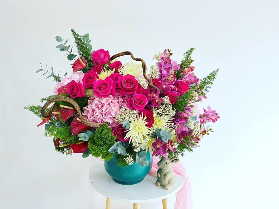 "Love You" is created from high quality Roses, Orchids, red Anthurium Hydrangeas, Mums Rice flower, and Greenery. It's truly a gorgeous, elegant, and perfect arrangement for all special occasions. It's also a wonderful gift to make someone feels loved and feels that you care.