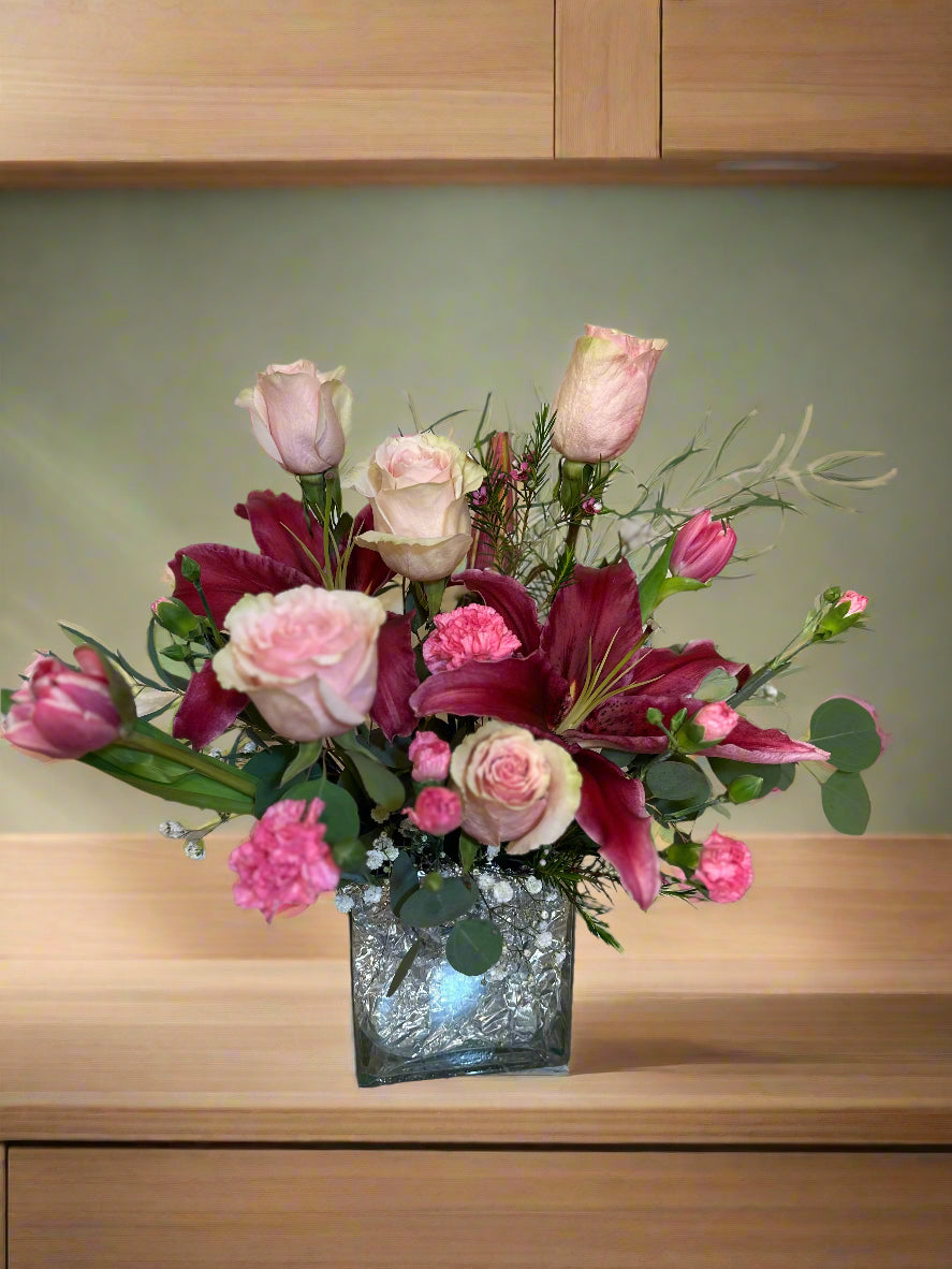 My Sweet is created from high quality Roses, Lilies, mini-Carnations, Tulips, and greeneries. It's a great gift for any occasion to show someone that you care.