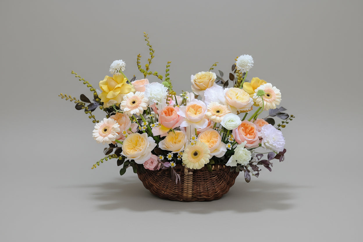 The "Cozy" arrangement features a blend of premium roses, gerberas, ranunculus, and other flowers, designed to convey a sense of warmth to its recipient. It serves as an ideal gift for any occasion.
