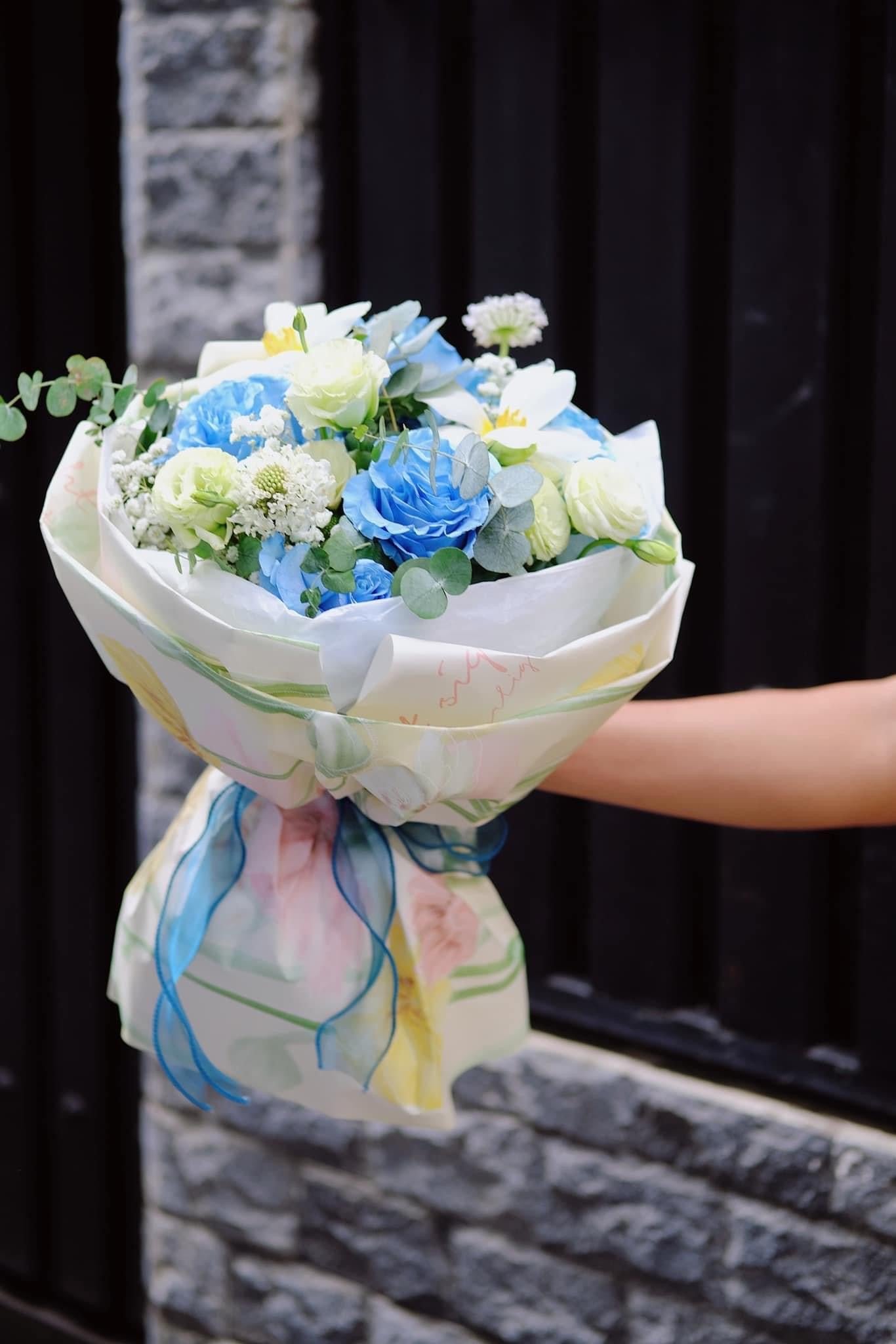 Give you My Love - My Beautiful Sky - the standard one, contains a half dozen high-quality Roses; Mix greeneries, subordinate flowers, and the modern wrapping style brings out their stunning beauty perfectly.