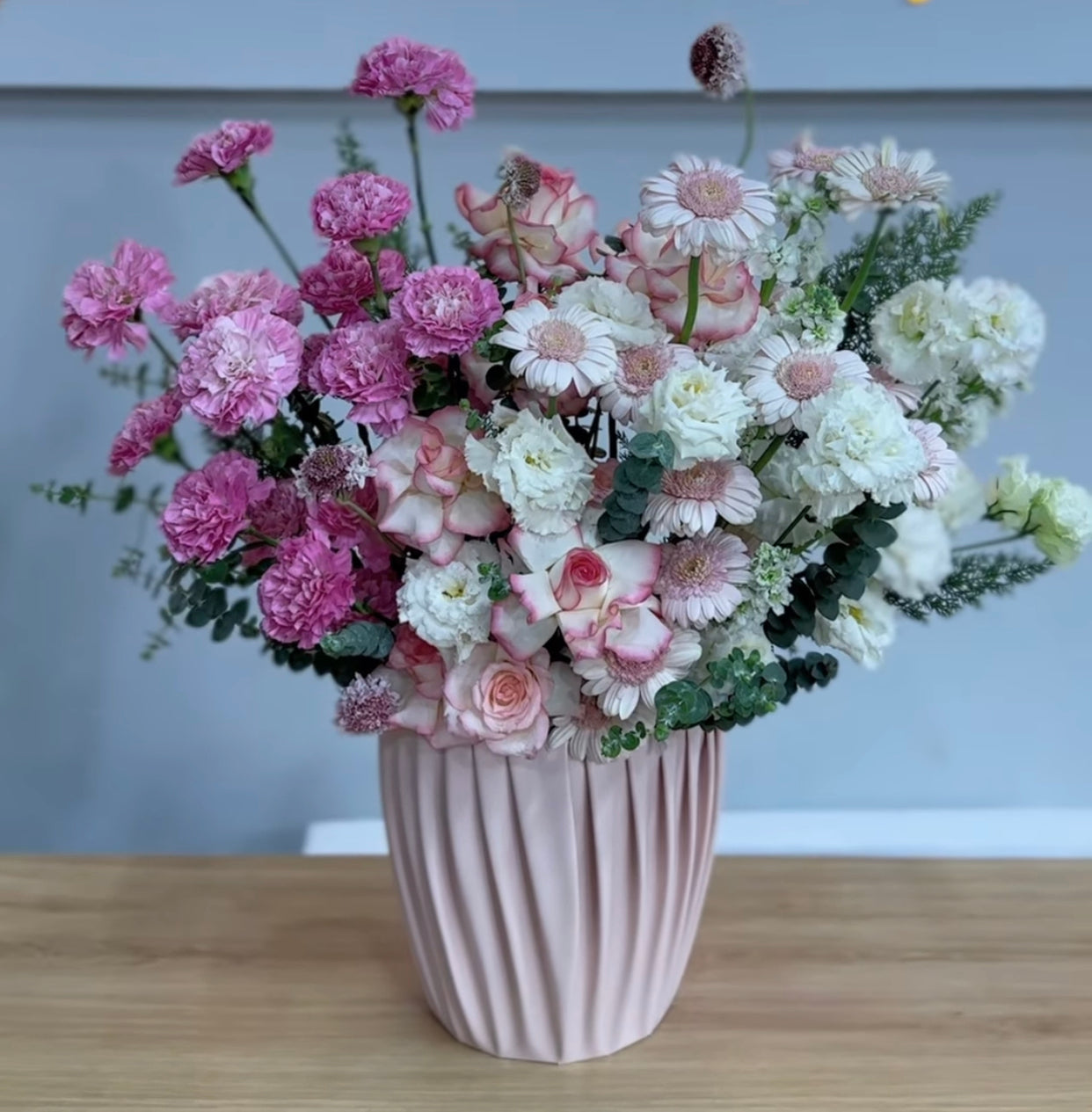 "Sym SD" is created from high quality Roses, Gerberas, Lisianthus, and other flowers. It's truly a gorgeous, elegant, and perfect arrangement to show someone that you care.